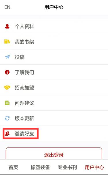 在“用戶(hù)中心”頁(yè)面的最下方有一個(gè)“邀請好友”項。