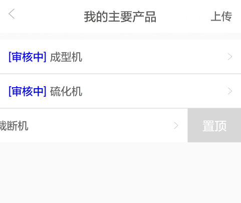 您上傳完的企業(yè)主要產(chǎn)品、專(zhuān)利、專(zhuān)有技術(shù)、定點(diǎn)與品牌產(chǎn)品內容,均可在上傳后就馬上通過(guò)向左滑選擇置頂,以設置相關(guān)信息的發(fā)布順序。